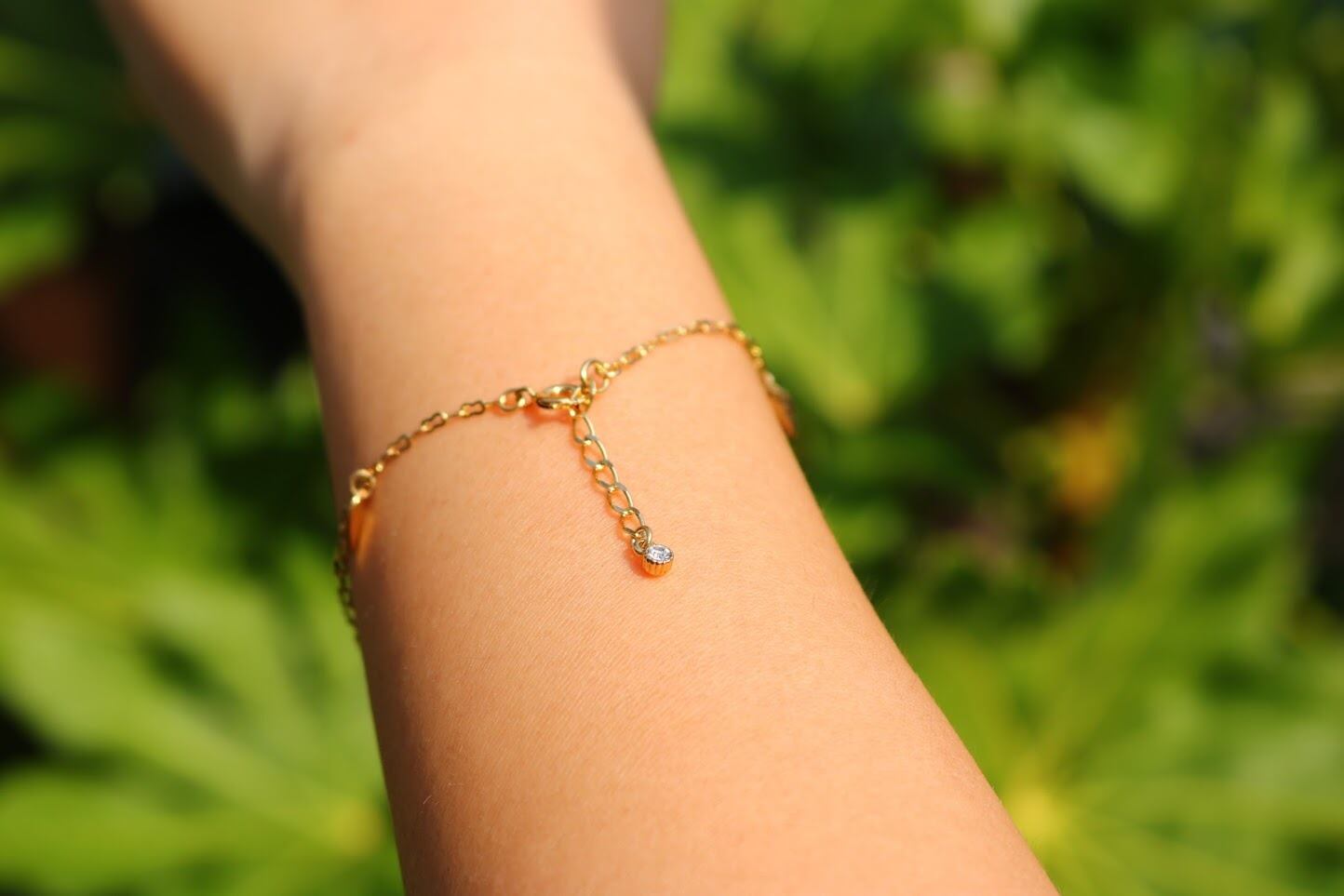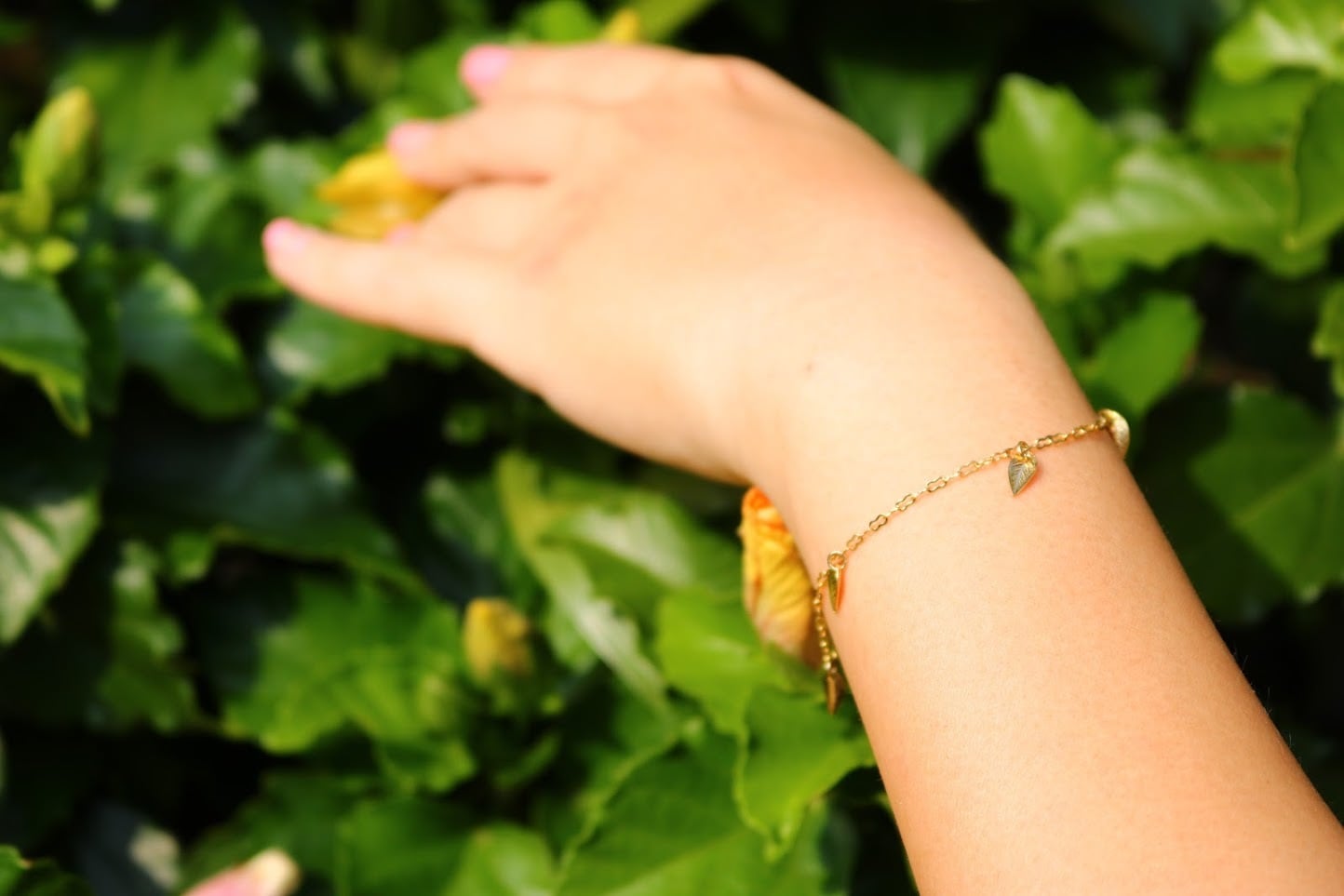 アジャスターの先には、葉についた水滴を思わせるラインストーンが光っています。