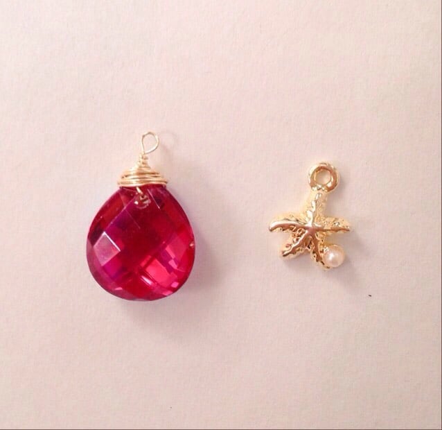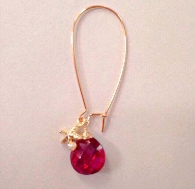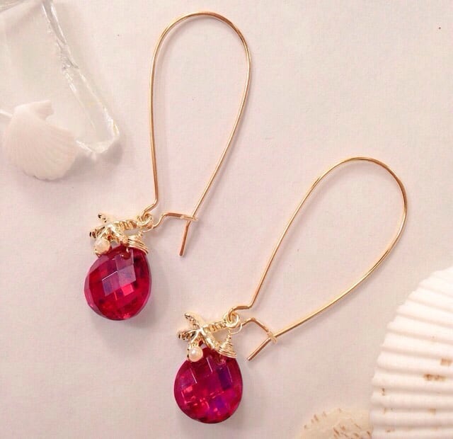 マゼンダ色のチェコガラスとパール付きヒトデチャームの夏らしいピアスです。